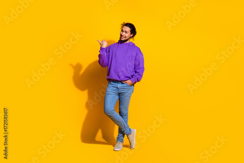 pointing, finger, choice, choose, young, man, male, purple, hoodie, style, fashion, yellow, background, smile, photogenic, casual attire, lifestyle, pose, trendy, funny, student, model, gesture, confident, activewear, happy, cheerful, vibrant, positivity, portrait, arab, middle eastern, latin, guy, advertising, promoting, shopping, signs, symbol, hand, posing, cool, urban, expressive, energy, black, friday, sale, discount, copy space