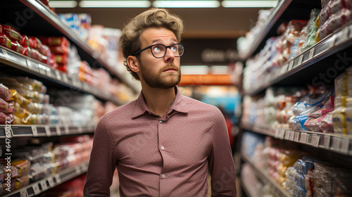 Portrait Of A Young Man Shopping For Food In Supermarket - Shallow Depth Of Field