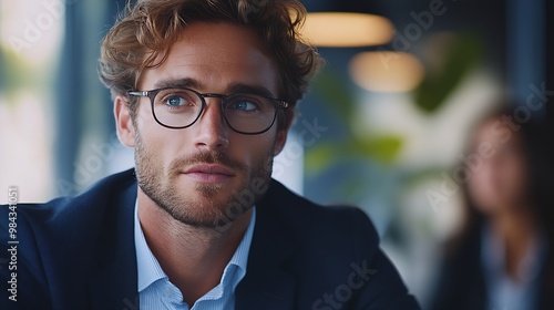 Portrait of a Young Successful Director Making a Report to a Board of Directors During an Annual Financial Meeting in the Conference Room Business People and Partners Discussing Work i : Generative AI