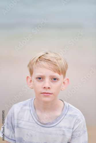boy, preteen, children, caucasian, portrait, racked, beach, lifestyle, confidence, blond, casual attire, front, outdoors, day, alone, 1, people
