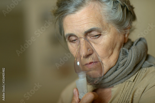 Portrait of elderly woman with flu inhalation