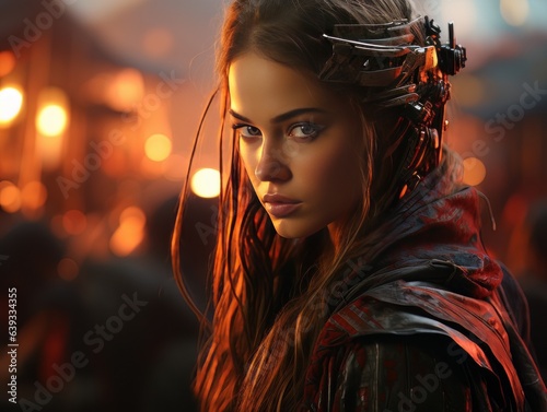 Portrait of epic warrior woman at sunset AI