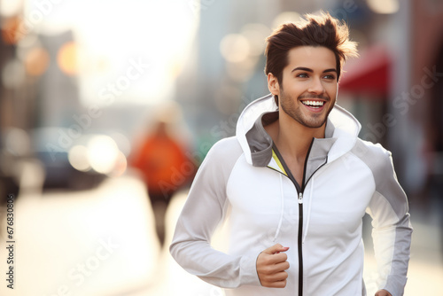 portrait of handsome man who doing sport outdoor, morning jogging. healthy lifestyle