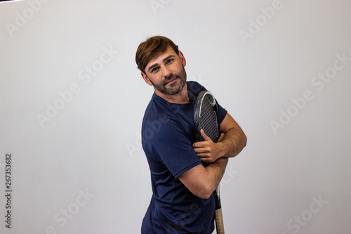 background, brown hair, fashion, photogenic, love, male, man, outdoor sport, portrait, racket, sport, tennis, white, young