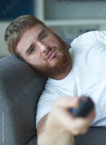 lay, man, sad, watch, television, remote, angry, living room, european, beard, television, control, young, entertainment, sofa, home, motion picture, male, technology, couch, room, film, lifestyle, leisure, show, person, media, background, holding, hand, adult, living, guy, program, electronic, smile, multimedia, relax, watching, look, smart, expression, relaxation, bearded, day, vertical, photo, bed