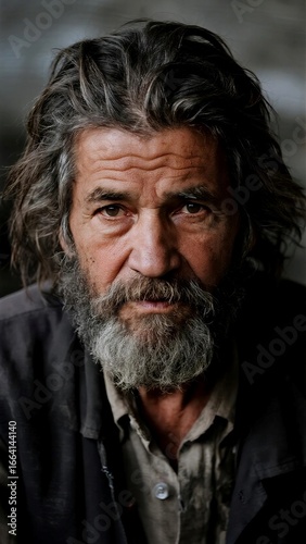 Portrait of Older Bearded Man – Authentic Expression and Character Study