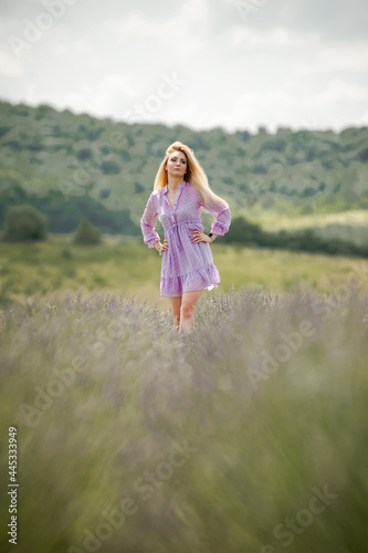 Portrait of smiling blonde woman on the lavender field