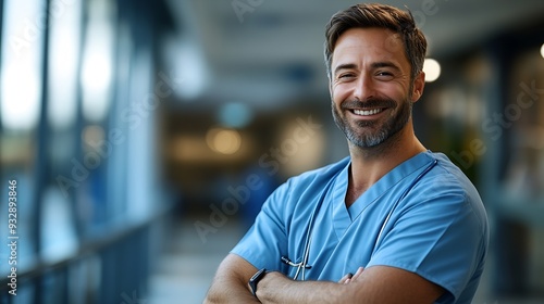 smiling, people, doctor, hospital, success, portrait, nurse, photo, man, happiness, working, surgeon, occupation, uniform, corridor, enjoyment, young adult, confidence, satisfaction, horizontal, brown hair, lifestyle, dependability, charming, cheerful, copy space, front view, indoor, looking, male nurse, male, medicare, professional occupation, standing, toothy smile, young men