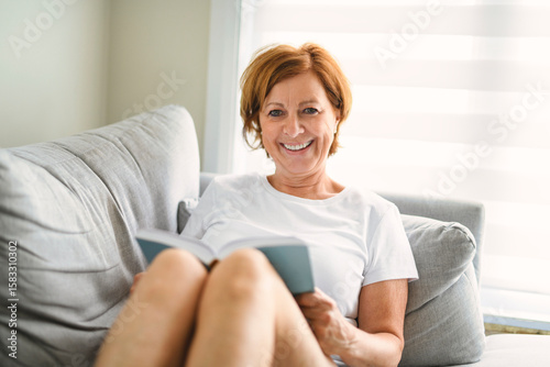 attractive, casual attire, positive, life, leisure, indoor, house, home, 1, happiness, person, female, lifestyle, reading, mature, beautiful, cheerful, book, woman, satisfied, adult, middle, natural, wellness, optimistic, pleasure, portrait, smiling, emotional, lady, enjoy, aged, relax, friendly, candid, confident, caucasian, contemporary, rest, fashion, fun, coiffure, smart, face, 60s, happy, joyful, elegant
