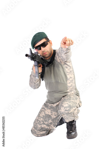 adult, american, armed, army, assault, automatic, background, battle, camouflage, combat, commando, conflict, execute, guard, gun, infantry, isolated, male, man, military, officer, 1, power, protection, rifle, security, sharpshooter, soldier, special, strength, target, uniform, us, violence, war, warrior, weapon, white, young, aim, finger, looking, pointing, veteran, commander, gesture, hand, showing, command