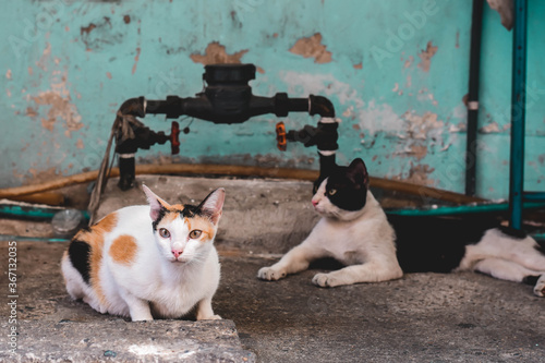 Portrait of two Thai cats in Bangkok Thailand
