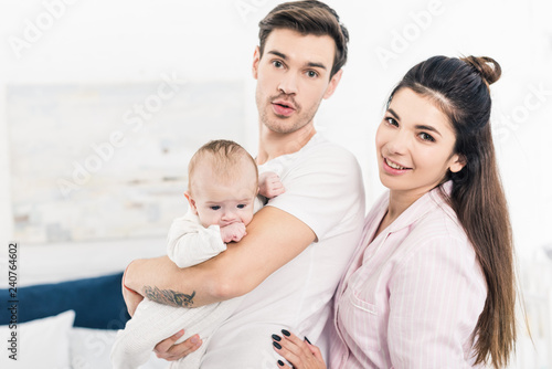 portrait of young family with little son at home
