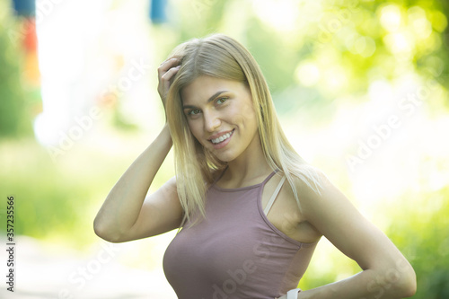 attractive, background, beautiful, bright, candid, casual attire, caucasian, cheerful, face, female, fresh, girl, hair, happy, head, joy, lifestyle, long, long hair, look, model, natural, 1, outside, people, person, portrait, positive, pretty, smile, sun, sunny, teenage, teenage, teenage, tree, white, woman, young, nature, beauty, park, summer