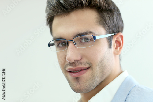 portrait, man, male, guy, eyewear, eyeglass, optical, closeup, adult, isolated, copy space, white background, studio, photogenic, attractive, smile, smiling, people, caucasian