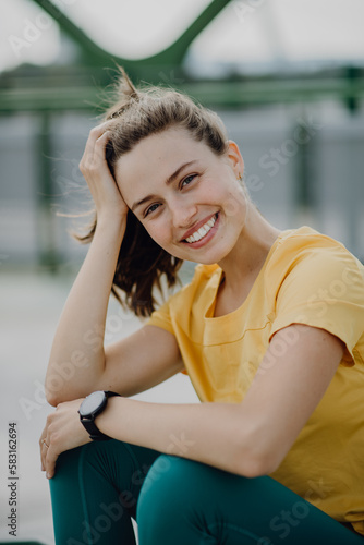 portrait, young, woman, watch, beautiful, half face, pensive, contemplation, city, bridge, city life, run, break, rest, sport, person, fitness, runner, female, healthy, lifestyle, fit, jogger, training, active, adult, summer, physical exercise, athlete, jogging, stretch, health, leg, morning, urban, girl, athletic, balance, effort, outside, pose, practice, relax
