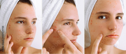 beauty, care, face, portrait, skin, skincare, young, caucasian, acne, dermatology, change, concept, banner, female, clean, cosmetic, facial, hygiene, make-up, natural, pimple, problem, retouch, treatment, cosmetology, adolescence, beautiful, background, girl, healthy, imperfection, make-up, compare, comparison, head, layer, part, pore, regeneration, teenage, wellness, bathroom, mirror, pain, puberty, squeezing, teenage, touching