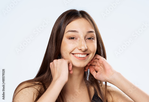 Portrait, young woman on white isolated background, natural beauty