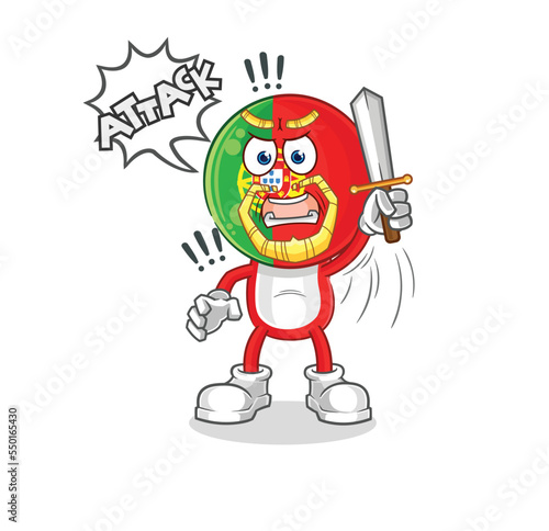 portugal knights attack with sword. cartoon mascot vector