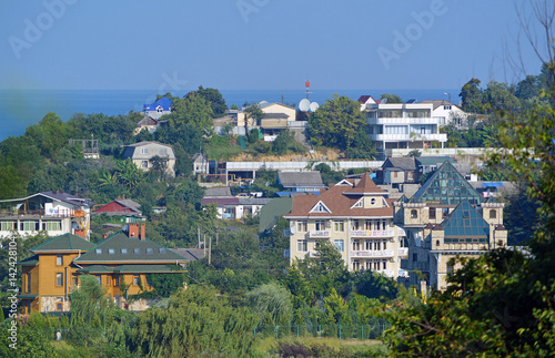 russia, edge, district, sochi, south, coast, black, sea, resort, domestic, tour tourism, dwelling, vacation, vacation, daytime, blue, summer, house, building, village, roof, kind, greenery, tree, mountain, city, boarding house, sanatorium, base, sector, coast, church, temple, cupola, fence, town, estate, horizon