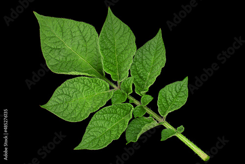 potato, leaf, green, black, isolated, agriculture, natural, plant, black background, closeup, image, nobody, flora, botany, leaves, tree branch, bunch