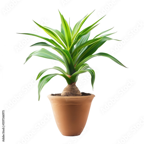 plant, potted, green, vibrant, foliage, tropical, houseplant, indoor, nature, organic, growth, beauty, decoration, home, design, decorative, texture, natural, light, striped, leafy, stem, pot, terracotta, brown, vase, flower, succulent, agave, yucca, exotic, lush, healthy, isolated, modern, still, life, closeup, detail, object