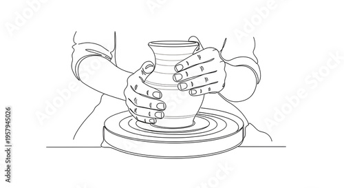 potter, hand, vase, pottery, wheel, round, clay, ceramic, craft, studio, artist, manual, motion, working, sharpened, upper body, finger, line art, vignetting, centered, formation, shaping, handiwork