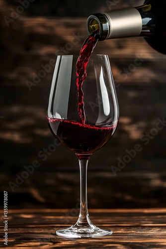 Pouring Red Wine into Elegant Glass on Wooden Table