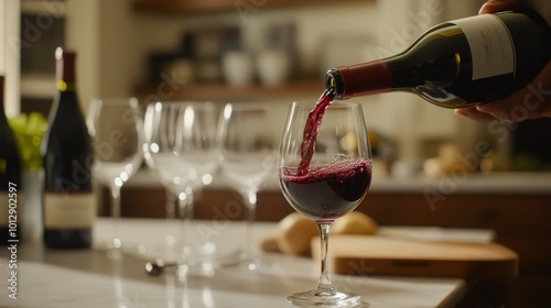 wine, red, glasses, pouring, drink, beverage, alcohol, liqueur, table, bottle, tabletop, kitchen, counter, bar, celebration, elegant, glassware, dining, food, lifestyle, gastronomy, culinary, epicure, merlot, cabernet, chardonnay, black, sauvignon, zinfandel, tasting, cellar, sommelier, grape, vinery, vintage