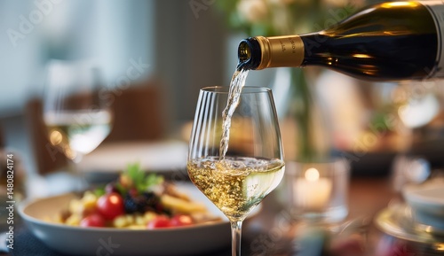 wine, pouring, glasses, dinner, elegant, cosy, white wine, meal, fine dining, epicure, eatery, tablescape, dining, food, beverage, celebration, drink, relaxing, luxury, gastronomy, culinary, entertaining, hospitality, refreshing, event, sophistication, leisure, gathering, favor, savoury