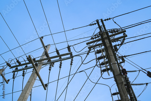 circuit, connect, distribution, efficiency, generation, goggles, post, power, production, support, electricity, energy, industrial, infrastructure, transmission, danger, electrical, ground, high, industry, large, pole, station, technology, tower, volt, voltage, wire, blue, cable, ceramic, equipment, induction, line, metal, sky, substation, transformer, day, dielectric, isolator, asia