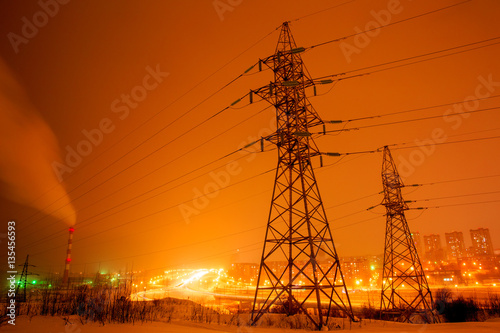 beautiful, cable, danger, electric, electricity, energy, high, industrial, industry, light, line, nature, night, object, orange, power, pylon, silhouette, sky, steel, supply, technology, transmission, urban, voltage, wire, city, fabric, factory, plant, support