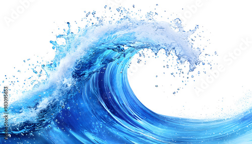 Powerful Ocean Wave - Blue Water Splash on White Background