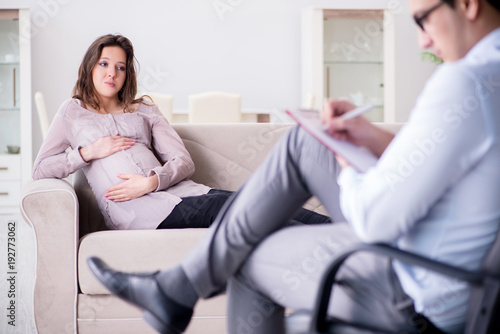 Pregnant woman visiting psychologist doctor