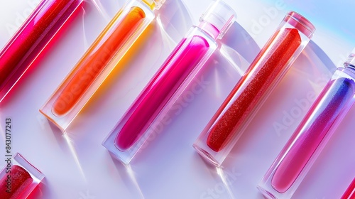 Premium colored lip glosses, aesthetically placed on a light background, highlighting luxury and sophistication