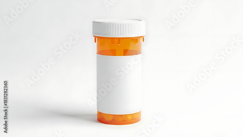 Prescription Pill Bottle Mockup with Blank Label Orange Container on White Background