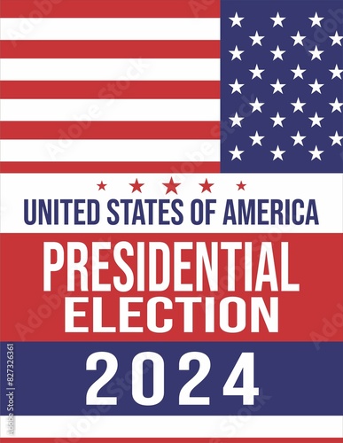 Presidential Election Campaign banner. November 5 is the Vote Day of the US Election 2024. Banner template with Official State Flag of United States of America.