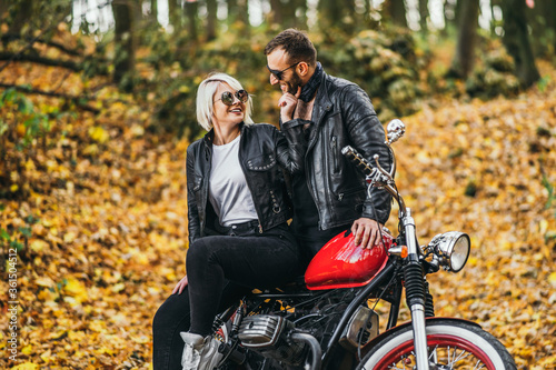 couple, motorcycle, motorbike, man, woman, bike, journey, travel, adventure, lifestyle, outdoors, drive, transport, human relationships, racer, vehicle, people, red, adult, transportation, leather jacket, forest, road, fashion, male, love, biker, sexy, ride, rider, motorcyclist, leisure, 2, trip, motor, style, female, together, leather, photogenic, concept, freedom, stylish, beard, blond, sunglasses, fall, autumn
