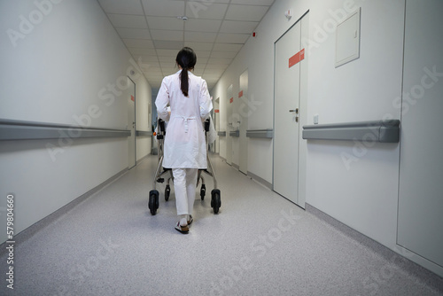 Pretty elegant doctor is supporting the unrecognized person in the hospital