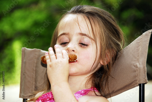 pretzel, food, bread, eating, outdoors, girl, children, young, smiling, face, cute, female, beautiful, people, person, beauty, pretty, children, girl, eye, little, fun expression, look, attractive, hair, casual attire, lifestyle, joy, youth, future, daughter, granddaughter, innocent, sweet, innocence, lovely