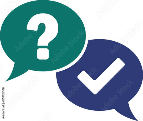 speech, bubble, question, answer, green, blue, icon, check, mark, help, verify, confirm, support, dialogue, chat, talk, communication, message, researching, response, feedback, interaction, symbol, graphic, illustration, concept, idea, ask, reply, solution, approval, correct, query, conversation, discussion, forum, comment, text, info, guide, tip, advice, consult, validate, positive, clarity, visual