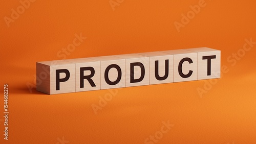 Product word with letters on wooden blocks on wooden table. Product or services sales business concept.3D rendering on orange background.