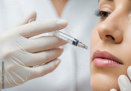 lip, injection, filler, aesthetic, procedure, woman, syringe, cosmetic, augmentation, treatment, beauty, care, doctor, hand, glove, needle, skin, face, dermatology, clinic, medicals, health, volume, rejuvenation, fats, closeup, detail, youth, modern, professional
