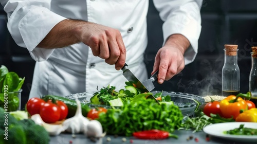 chef, cooking, vegetable, knife, preparation, ingredient, kitchen, healthy, salad, chopping, fresh, organic, colourful, greener, herb, garlic, tomatoes, pepper, culinary, cookery, chopping board, meal, epicure, food, lifestyle, aromatic, diet, utensil, steam, favor, nourishment, professional, kitchen utensile, dining, closeup, freshness, sustainable, receipe, vibrant, colours