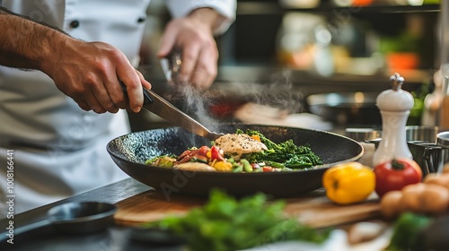 Professional Chef Preparing Delicious Healthy Meal with Fresh Ingredients in Kitchen