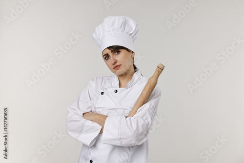 adult, background, bake, baker, bakery, baking, business, career, caucasian, chef, coat, confectionery, cook, cooker, cooking, culinary, dessert, equipment, female, food, grey, industry, job, kitchen, lifestyle, light, occupation, pastry, person, pin, portrait, professional, eatery, rolling, sad, service, supply, tool, toque, uniform, upset, utensil, woman, wooden, work, men at work, young
