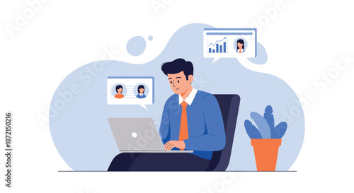 business, laptop, working, office, man, professional, datum, statistic, teamwork, communication, technology, computer, cyberspace, home office, character, illustration, vector, plant, productivity, task, manager, employee, digital, online, career, development, strategy, planning, analysis, report, human resources, connection, networking, growth, project, software, tool, businessman, sitting, sharpened, concentration, workplace