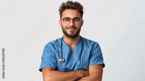 Professional portrait on a white background of a male orthopedic surgeon