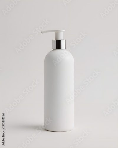 Professional Product Photography of a Premium White Matte Shampoo Bottle with Silver Pump Dispenser on Pure White Seamless Background, Modern Luxury Hair Care and Beauty Concept