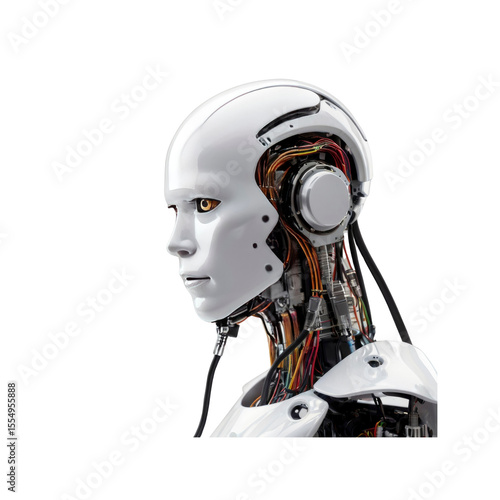robot, android, android, artificial intelligence, ai, cyborg, machine, technology, futuristic, science fiction, science fiction, digital, innovation, automation, engineering, robotic, computer, network, intelligence, electronic, wiring, circuit, mechanism, detail, closeup, profile, head, shoulder, white, metallic, modern, advanced, intelligent, future