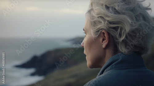woman, face, mature, beauty, hair, person, smile, sea, children, summer, beach, people, 1, smiling, brunette, model, outdoors, profile, eye, lady, blue, sky, nature, looking, water, elderly, alone, solitude, freedom